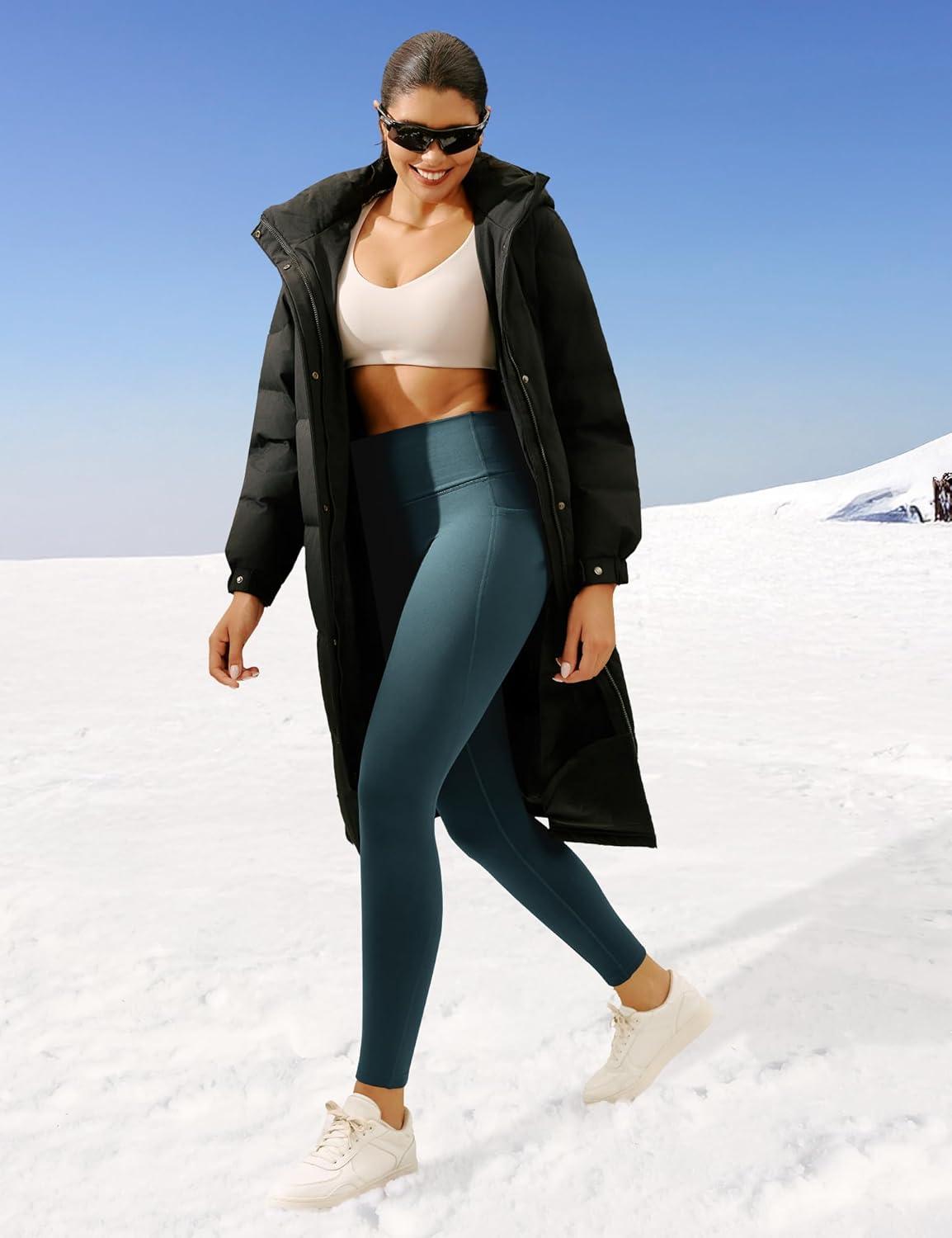 Ewedoos Fleece Lined Leggings Women Thermal Leggings for Women with Pockets High Waisted Winter Warm Tights Pants Clothes(Dark Green Leggings With Pockets for Women)