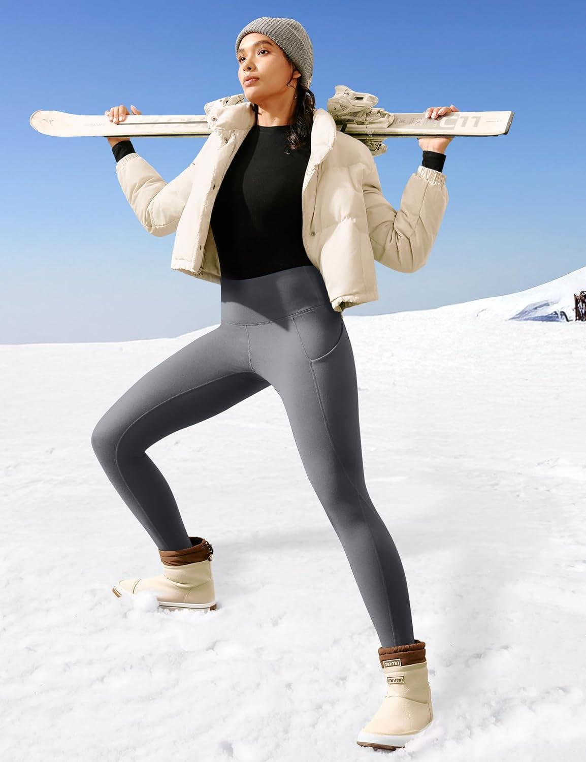Ewedoos Fleece Lined Leggings Women Thermal Leggings for Women with Pockets High Waisted Winter Warm Tights Pants Clothes(New Gray)