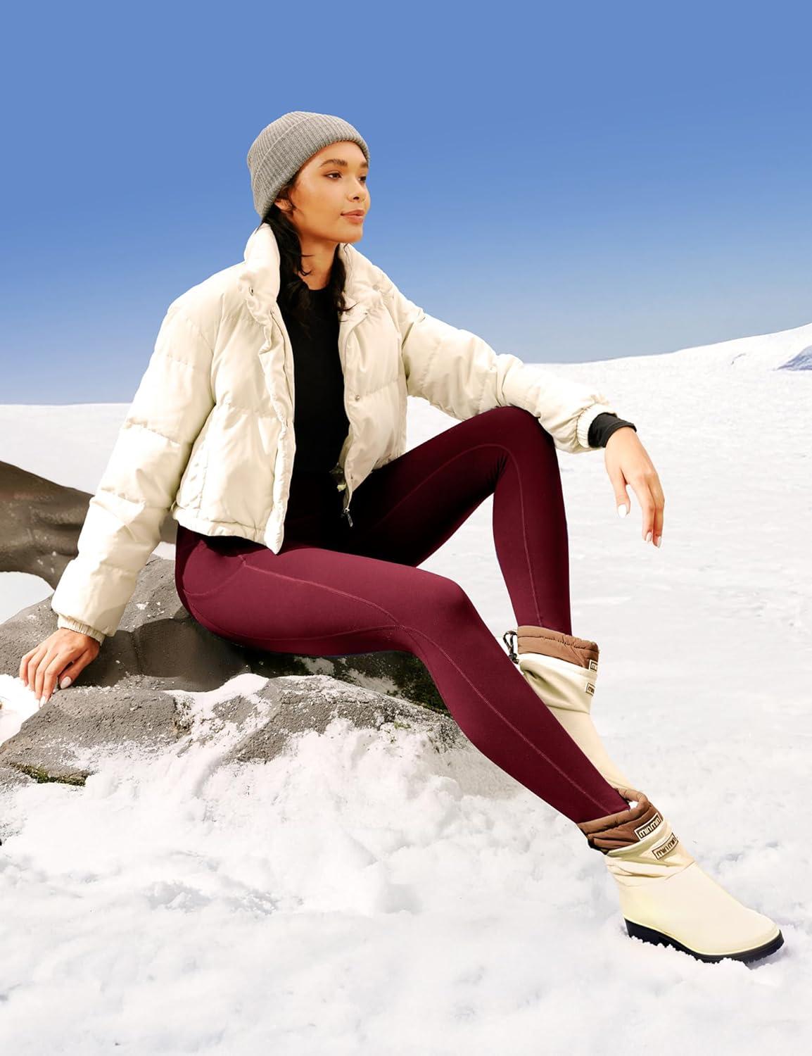Ewedoos Fleece Lined Leggings Women Thermal Leggings for Women with Pockets High Waisted Winter Warm Tights Pants Clothes(Plum Red)