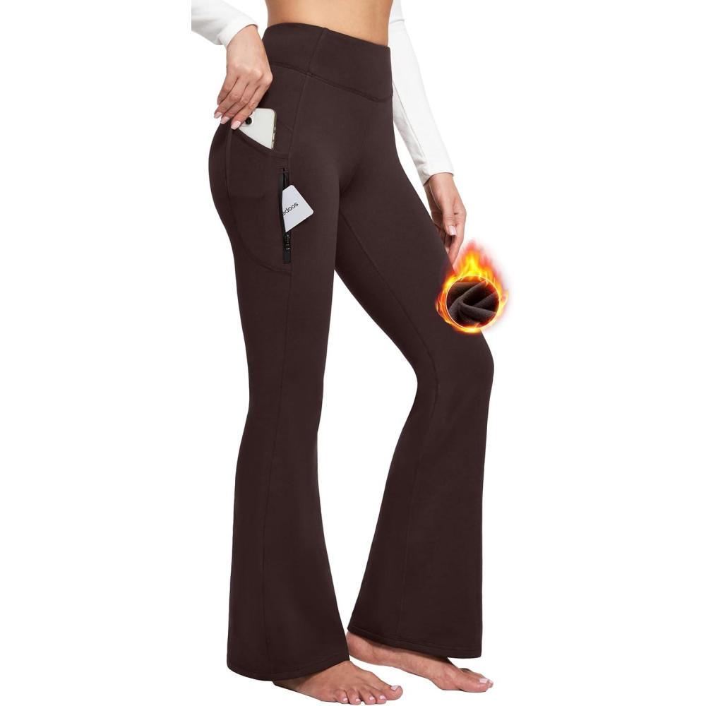 Ewedoos Fleece Lined Yoga Pants with Pockets Water Resistant Hiking Pants Women High Waist Flare Leggings Winter Warm Pants(Espresso)
