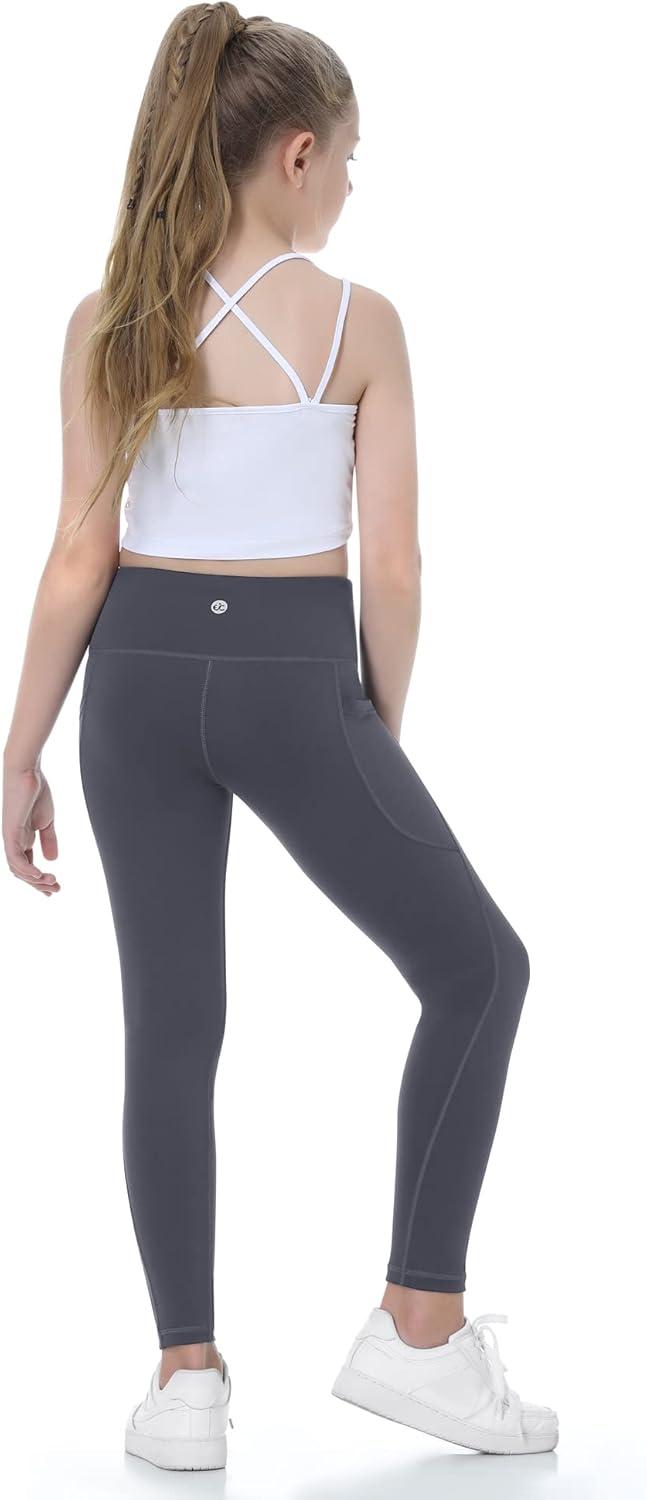 Ewedoos Girl’s Athletic Leggings with Pockets Kids Yoga Pants Leggings for Girls Active Running Dance Tights(Gray)