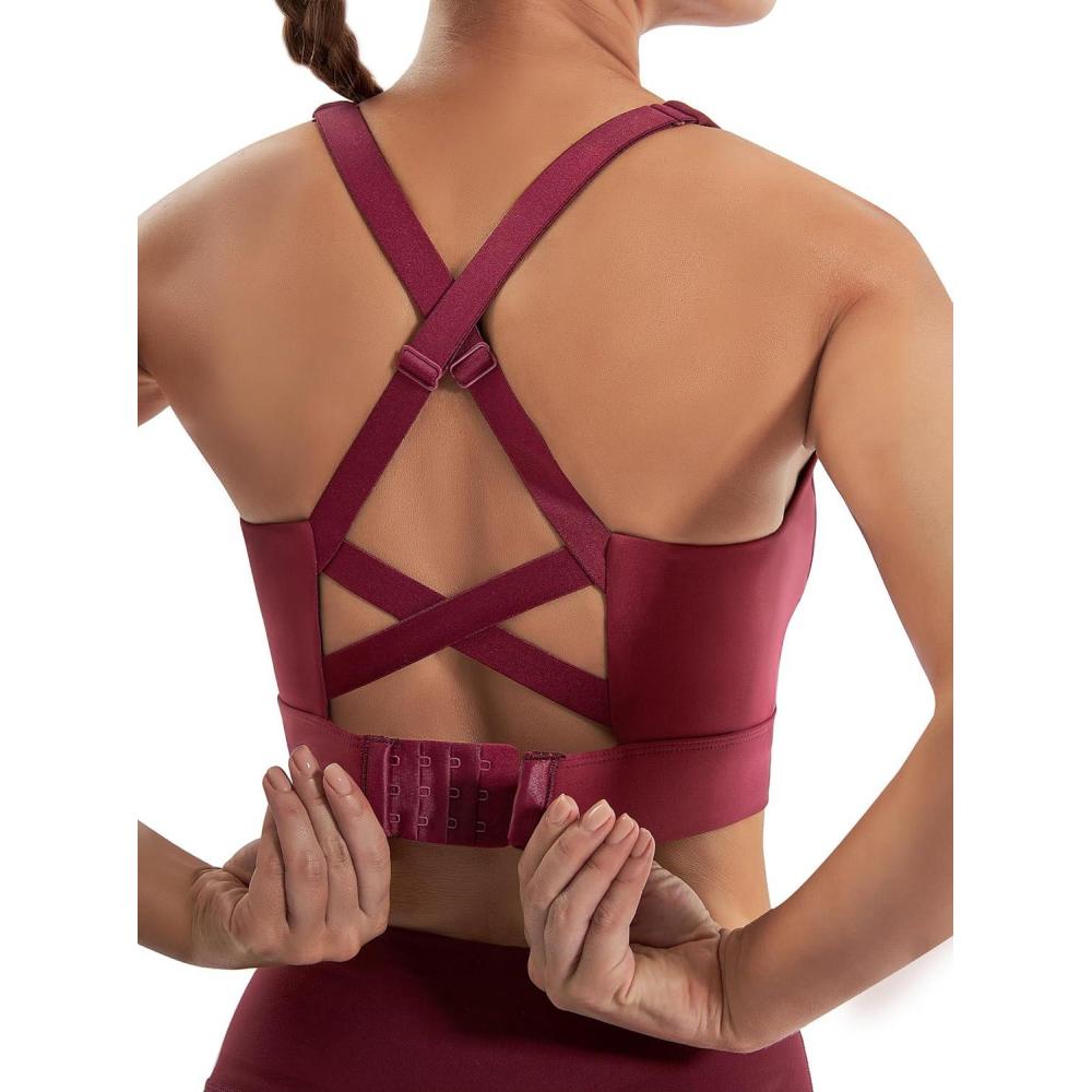 Ewedoos High Support Sports Bras for Women Adjustbale Supportive High Impact Sports Bra Push Up Workout Running Bras(Wine Red)