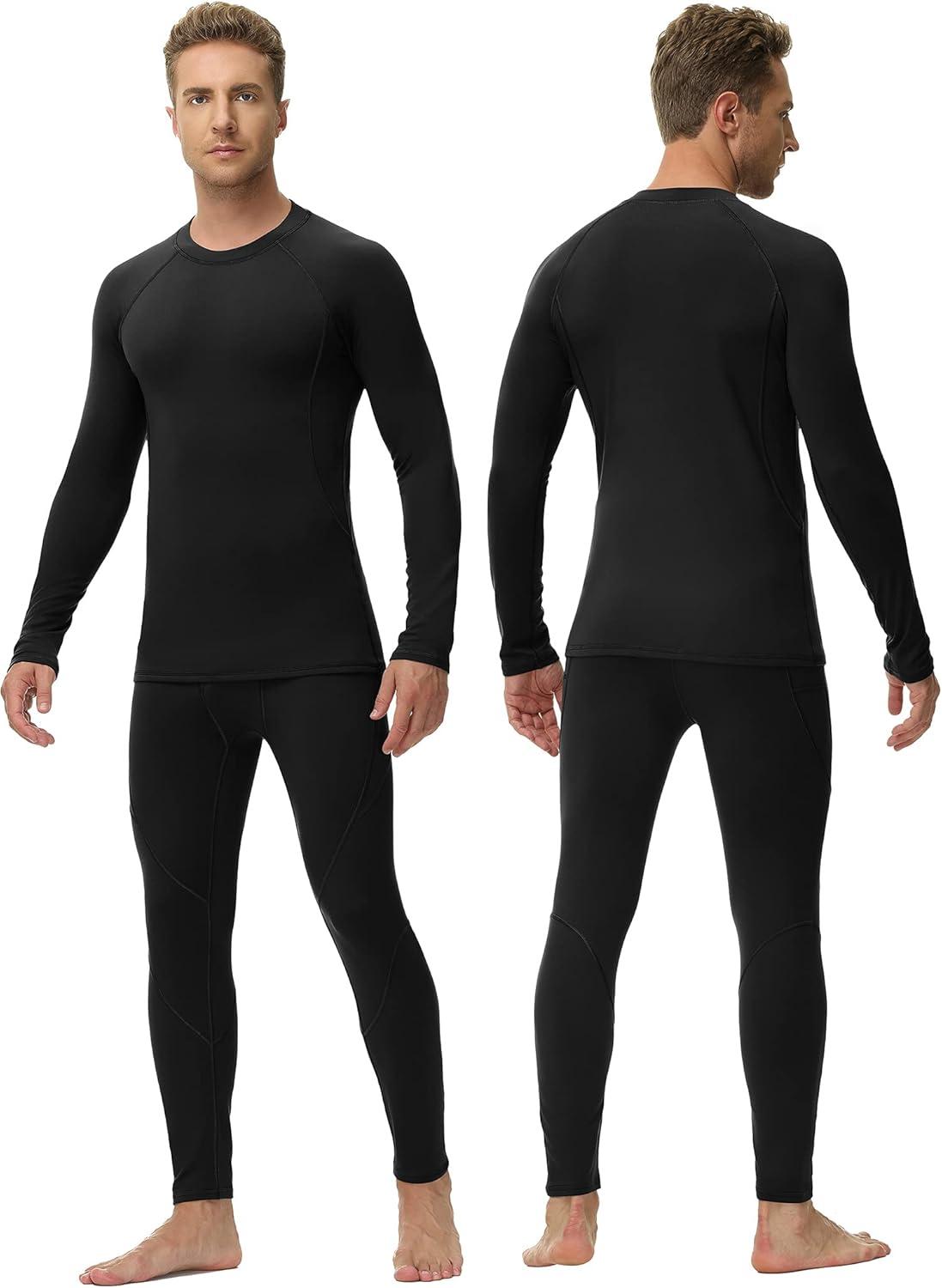 Ewedoos Long Johns for Men Comfortable Fit Mens Thermal Underwear Fleece Lined Top and Bottom Set with Pockets for Winter(Black)