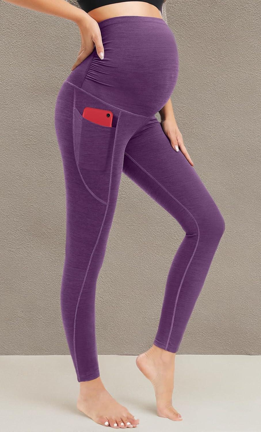 Ewedoos Maternity Leggings Shirred Side Pregnancy Leggings for Women Buttery Soft Maternity Yoga Pants with Pockets(Spacedye Mauve)