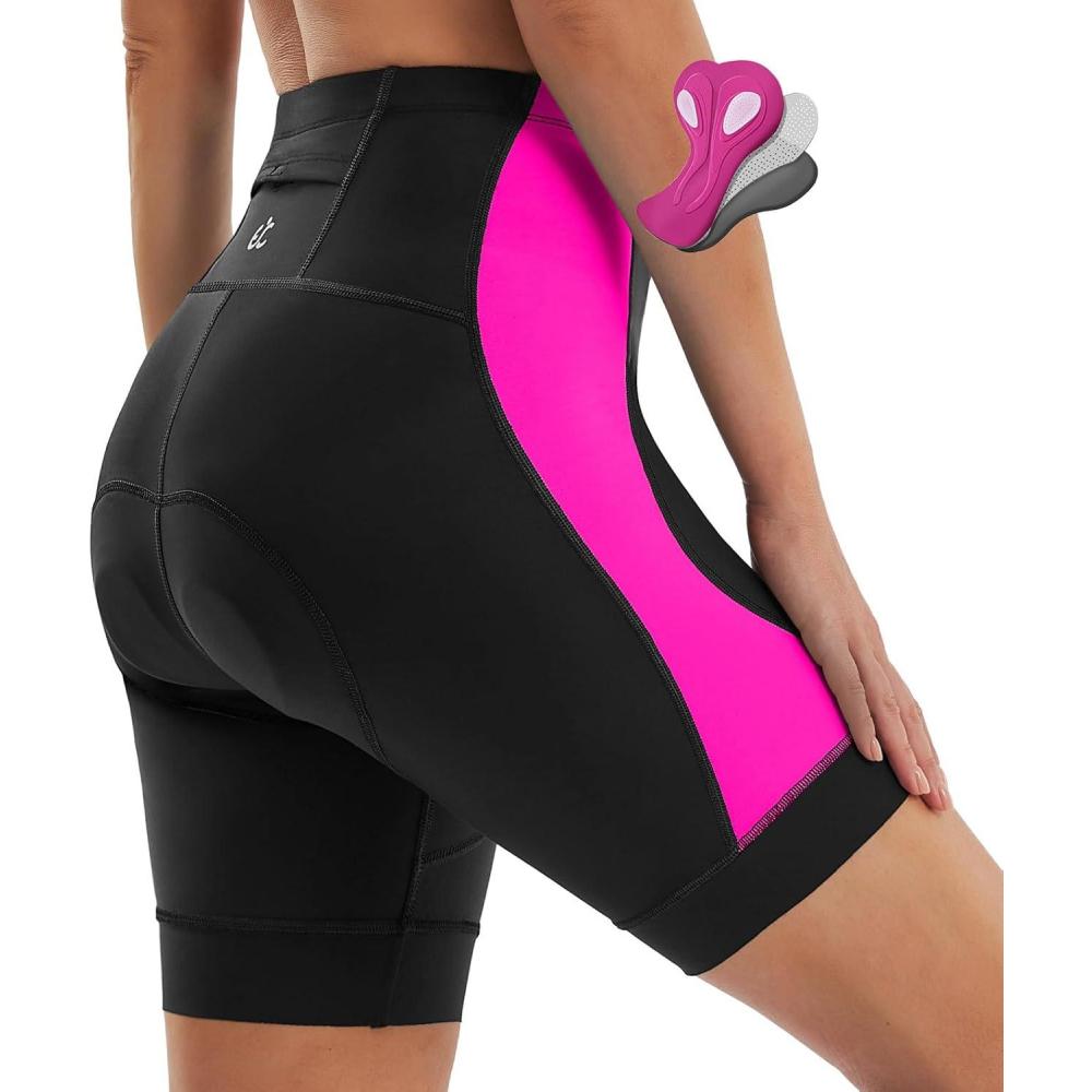 Ewedoos Padded Bike Shorts Women 4D Padding Cycling Shorts with Pocket Road Mountain Ride Womens Biking Bicycle Biker Shorts(Pink)