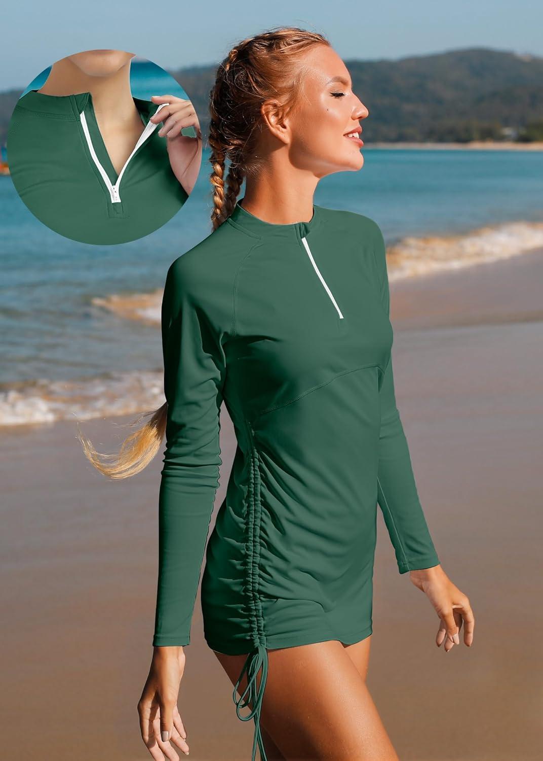 Ewedoos Rash Guard for Women UPF 50+ Sun Protection Clothing Swim Shirts for Woman SPF Shirts Long Sleeve UV Sun Shirts(Dark Green)