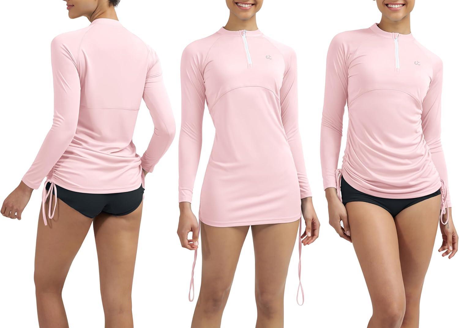 Ewedoos Rash Guard for Women UPF 50+ Sun Protection Clothing Swim Shirts for Woman SPF Shirts Long Sleeve UV Sun Shirts(Pink)