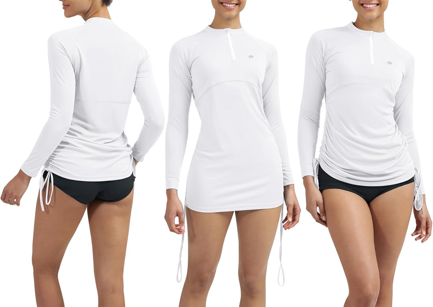 Ewedoos Rash Guard for Women UPF 50+ Sun Protection Clothing Swim Shirts for Woman SPF Shirts Long Sleeve UV Sun Shirts(White)