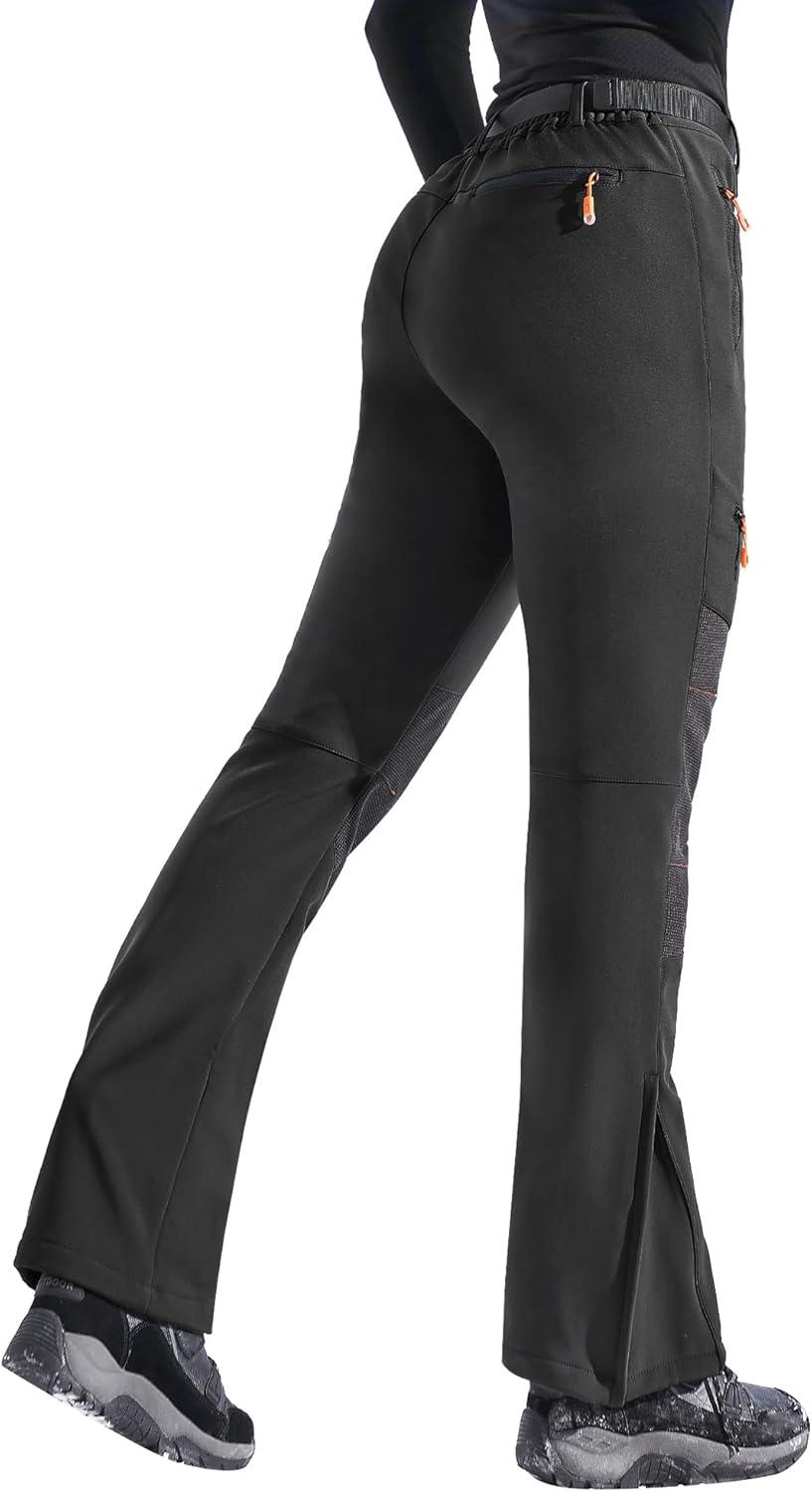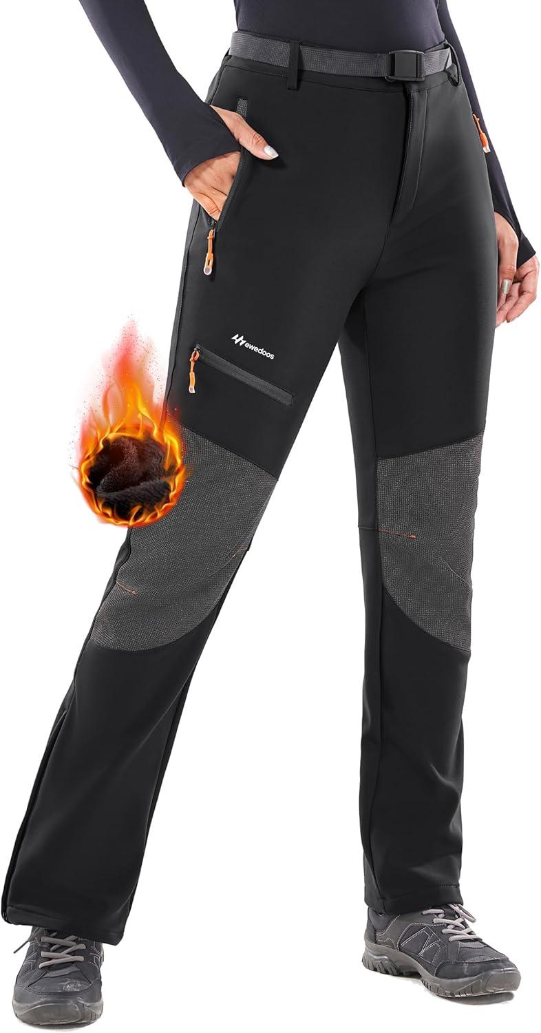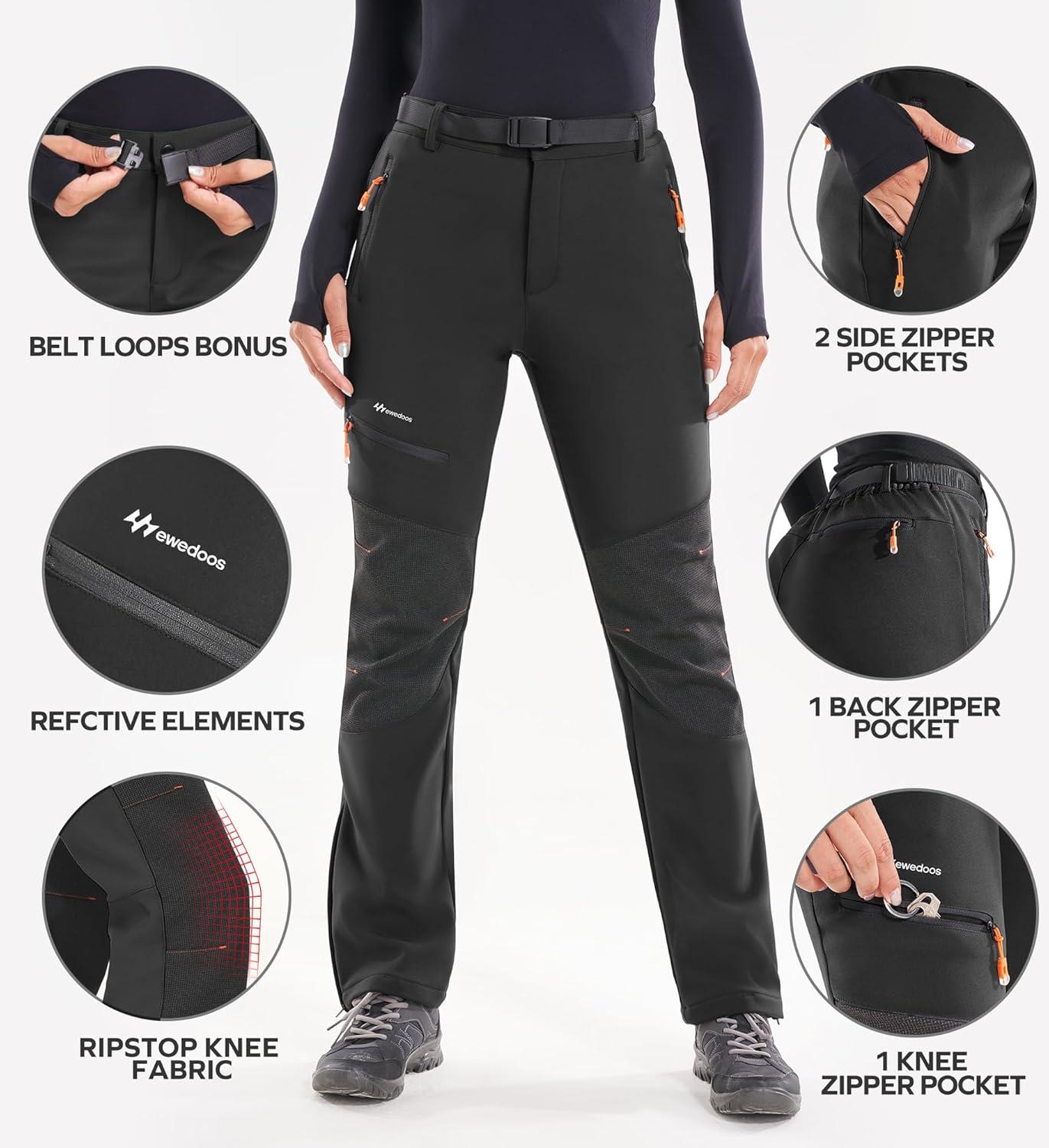 Ewedoos Snow Pants Womens Ski Pants Waterproof Insulate Softshell Fleece Lined Winter Hiking Snowboard Zipper Bottom Leg(Black)