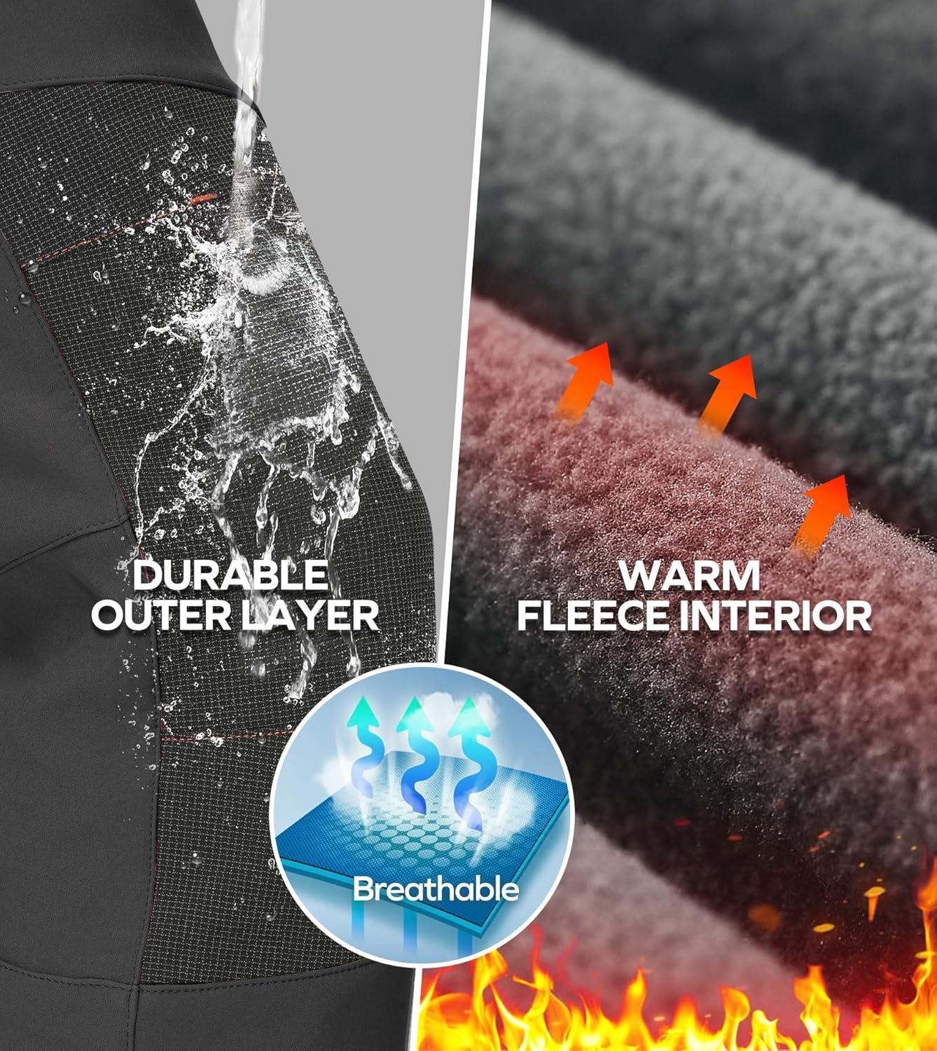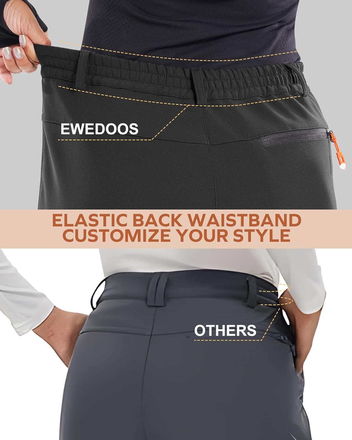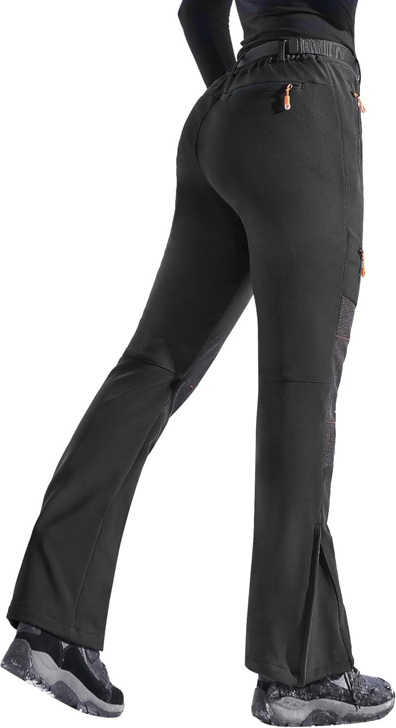 Ewedoos Snow Pants Womens Ski Pants Waterproof Insulate Softshell Fleece Lined Winter Hiking Snowboard Zipper Bottom Leg(Black)