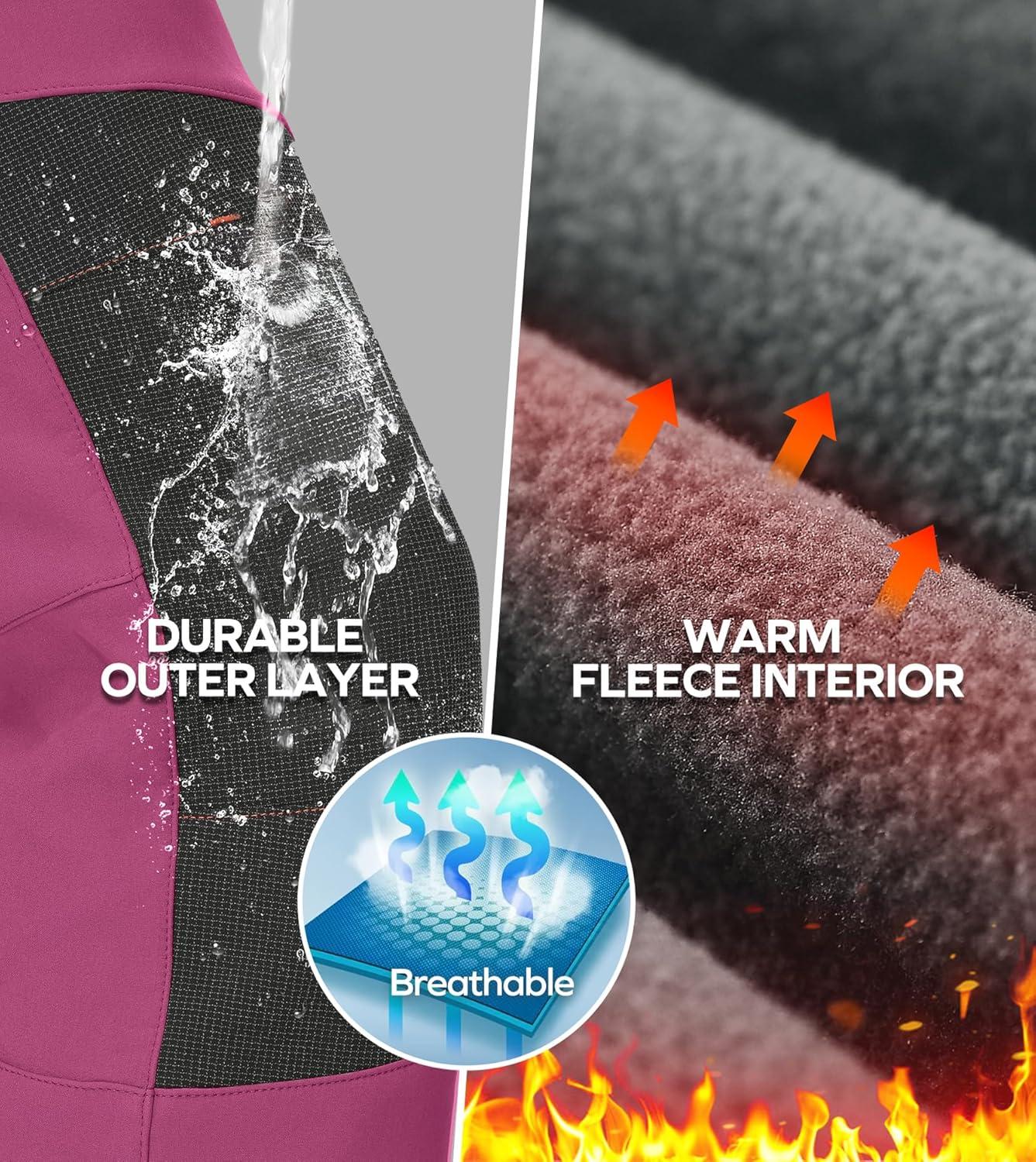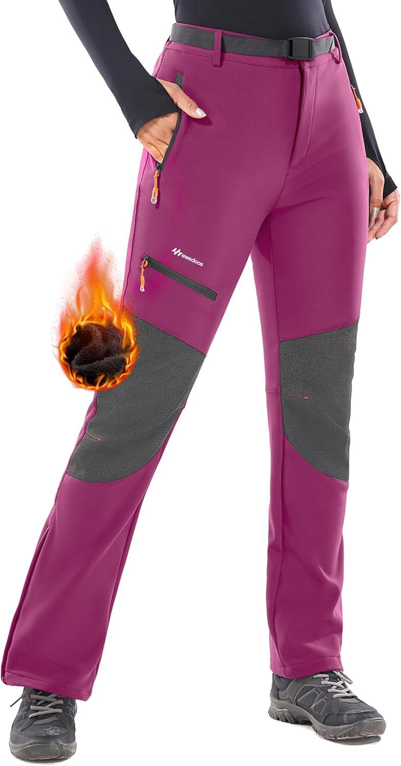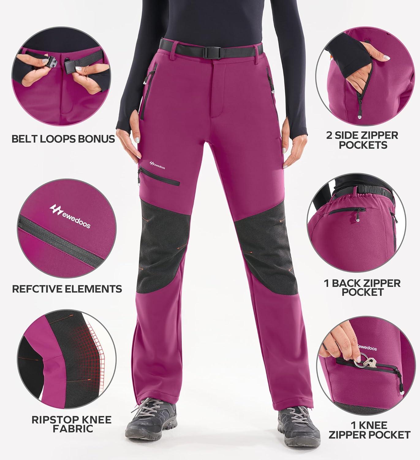 Ewedoos Snow Pants Womens Ski Pants Waterproof Insulate Softshell Fleece Lined Winter Hiking Snowboard Zipper Bottom Leg(Purple)