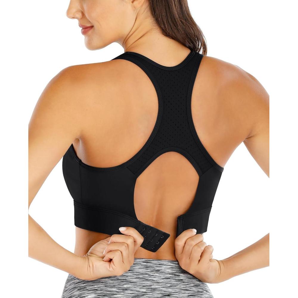 Ewedoos Sports Bras for Women High Support High Impact Sports Bras for Women Large Bust Push up Racerback Workout Running Bra(Black)