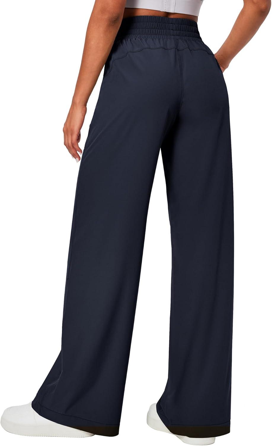 Ewedoos Wide Leg Pants Woman Lightweight Sweatpants Travel Track Work Yoga Dress Pants High Waisted with Pockets Casual(Navy)