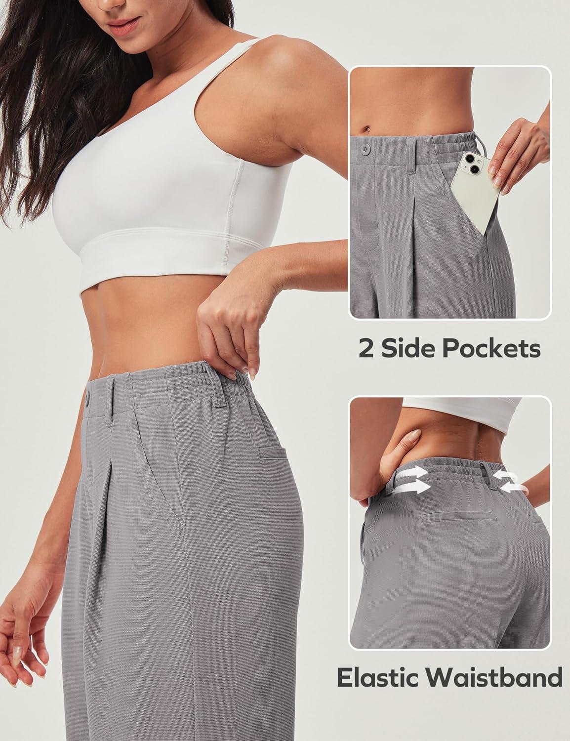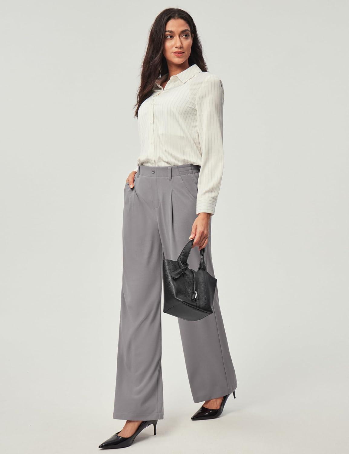 Ewedoos Wide Leg Pants Woman Stretchy Work Dress Pants Women Pull on Business Casual Slacks Trousers Fall Outfits 26″/28″(Mink Ash)