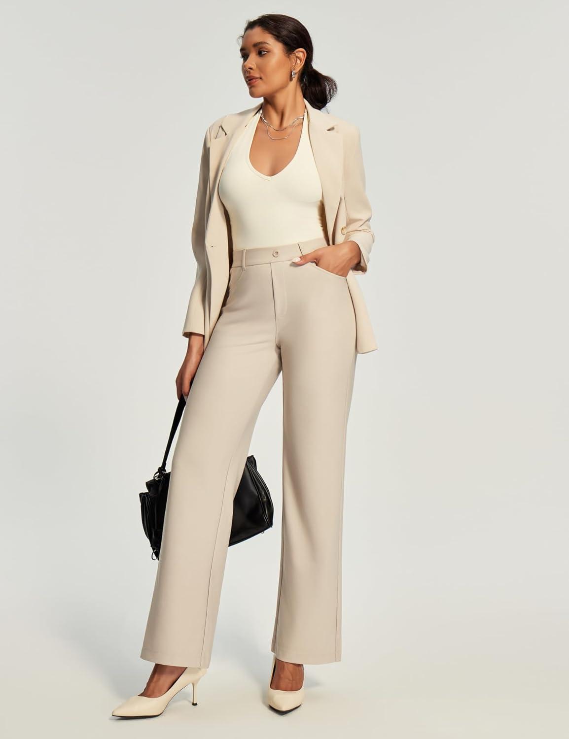 Ewedoos Women Wide Leg Stretchy Dress Pants High Waisted Work Pants Pull on Business Casual Outfits Slacks Office Trousers(Khaki-regular)