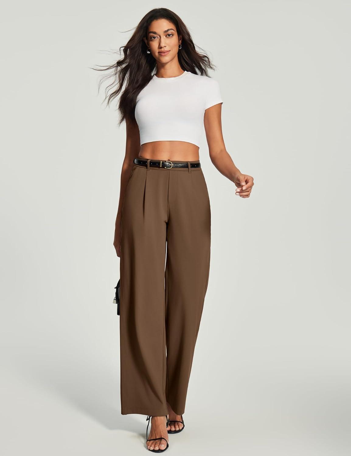 Ewedoos Womens Dress Pants Wide Leg Stretchy Work Pants Women Pull On Business Casual Trousers Slacks for Women(Caramel-regular)