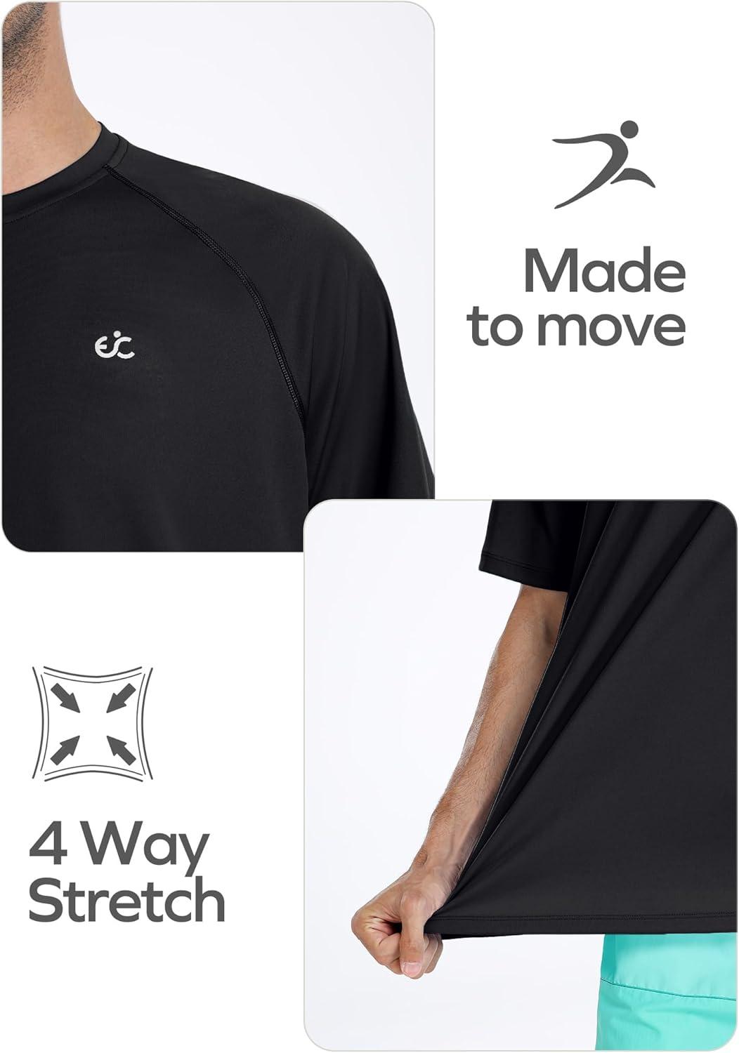 Men’s Swim Shirt Quick Dry Sun Shirts UPF50+ Rash Guard for Men Short Sleeve UV Sun Protection Beach Shirts(Black)