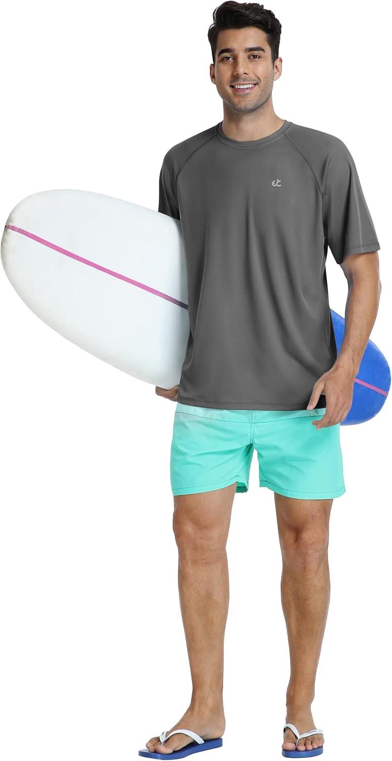 Men’s Swim Shirt Quick Dry Sun Shirts UPF50+ Rash Guard for Men Short Sleeve UV Sun Protection Beach Shirts(Dark Grey)