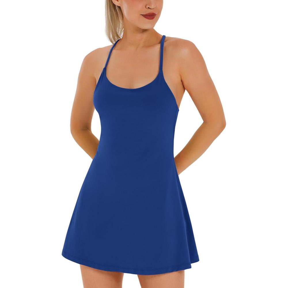 Womens Tennis Dress, Athletic Dress with Built-in Bra & Shorts Pockets Summer Dresses for Women Golf Outfits for Workout(Classic Blue)